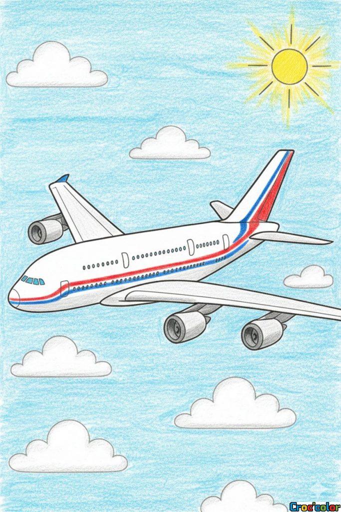 Viens colorier cet avion de ligne en plein vol ! Laisse libre cours à ton imagination pour embellir les ailes, le fuselage et le ciel autour. Amuse-toi à créer un décor unique et vibrant. Prêt à décoller pour une aventure artistique ? Attrape tes crayons et commence dès maintenant !