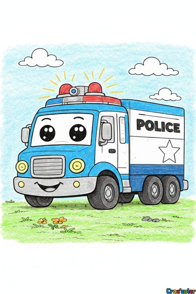 Coloriage Camion de Police Rigolo : La Patrouille Mignonne à Imprimer