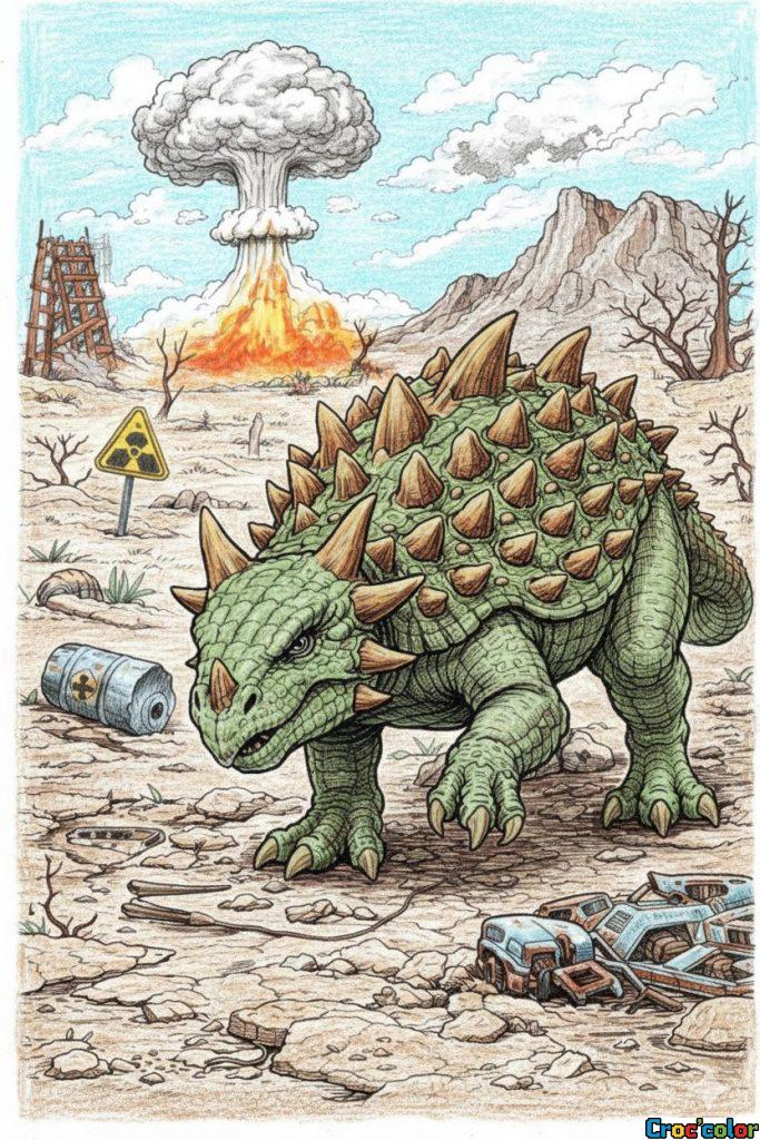 • Mots-clés : coloriage dinosaure réaliste à imprimer, dessin ankylosaure gratuit, coloriage apocalypse enfant adulte, activité survie et dinosaure, dessin complexe radioactif.
